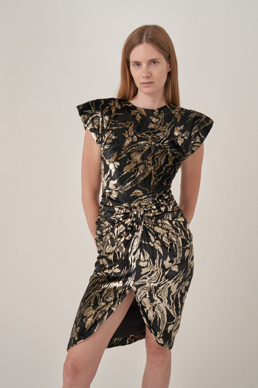 Regular price $1,295.00 CADRegular priceUnit price perSale price $1,295.00 CADvar product = { id: 9949173678368, title: "Vicky Tiel Dress", available: true, handle: "vicky-tiel-dress", description: "Black silk-blend velvet with metallic gold floral pattern. Draped skirt from waist and lower back. Sleeveless with exaggerated shoulder pads that can be removed. Center back zip closure. Lightly boned hips at skirt. Fully lined. 1980s Vicky Tiel — Marked size FR 42. Suggested best fit is US 0-2. Please refer to exact measurements in the sizing tab to ensure the right fit.", type: "Vintage", tags: ["atelier vintage"], options_with_values: [{"name":"Title","position":1,"values":["Default Title"]}], featured_media: { alt: "Vicky Tiel Dress", src: "\/\/absolutelyfabrics.com\/cdn\/shop\/files\/Flabsabs613_36.png?v=1753804144", }, url: "\/collections\/vintage\/products\/vicky-tiel-dress", mf: {} }; var variants = []; var variant = { id: 50478296957216, available: true, option1: "Default Title", option2: null, option3: null, options: ["Default Title"], price: 129500, compare_price: null, inventory: { quantity: 1, policy: "deny" }, mf: {} }; variant.media = null; product.selected_variant = variant; variants.push(variant); product.variants = variants; -