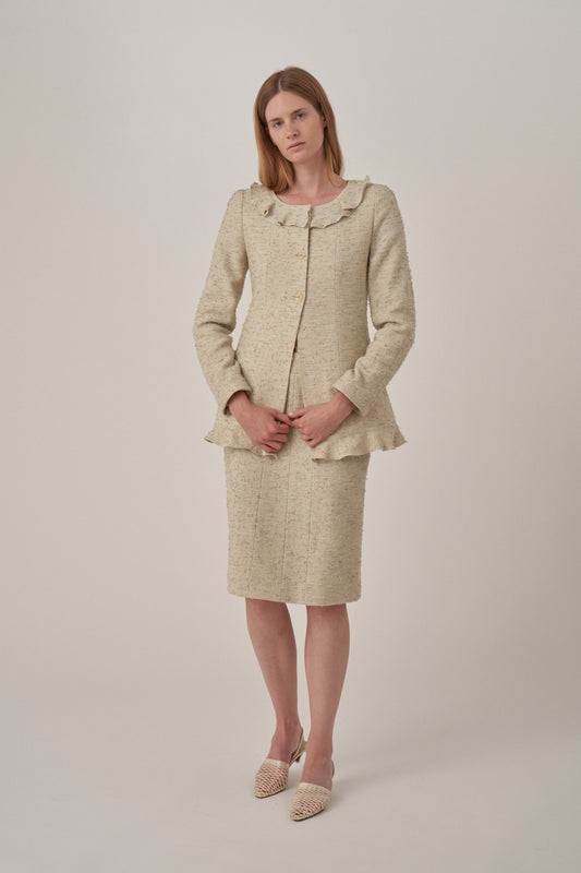 Regular price $7,995.00 CADRegular priceUnit price perSale price $7,995.00 CADvar product = { id: 10008217190688, title: "Chanel Wool Bouclette Skirt-Suit", available: true, handle: "chanel-wool-bouclette-skirt-suit", description: "Wool bouclette skirt-suit with ruffle cut-work collar. Shoulder-pads. Chain inside the jacket on the bottom edge — Marked size FR 38. Suggested best fit is US 4-6. Please refer to exact measurements in the sizing tab to ensure the right fit.", type: "Vintage", tags: ["atelier vintage","MID"], options_with_values: [{"name":"Title","position":1,"values":["Default Title"]}], featured_media: { alt: "Chanel Wool Bouclette Skirt-Suit", src: "\/\/absolutelyfabrics.com\/cdn\/shop\/files\/Flabsabs613_46.png?v=1753806661", }, url: "\/collections\/vintage\/products\/chanel-wool-bouclette-skirt-suit", mf: {} }; var variants = []; var variant = { id: 50488205213984, available: true, option1: "Default Title", option2: null, option3: null, options: ["Default Title"], price: 799500, compare_price: null, inventory: { quantity: 1, policy: "deny" }, mf: {} }; variant.media = null; product.selected_variant = variant; variants.push(variant); product.variants = variants; -