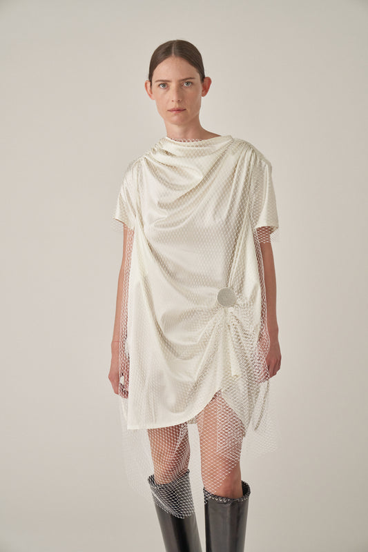 Regular price $1,395.00 CADRegular priceUnit price perSale price $1,395.00 CADvar product = { id: 10063153758496, title: "Cinched Dress", available: true, handle: "cinched-dress", description: "Short-sleeve dress with an overlay of sheer mesh netting. Designed with soft draping at the neckline and a cinched side detail that creates subtle asymmetry. Finished with a relaxed fit and a lightweight layered construction.\nModel is 5'11 and is wearing a size S.", type: "Dresses", tags: ["FW25","new"], options_with_values: [{"name":"Size","position":1,"values":["S","M","L"]}], featured_media: { alt: "Cinched Dress", src: "\/\/absolutelyfabrics.com\/cdn\/shop\/files\/CINCHED-DRESS_TOPS_tiff_1.jpg?v=1759950190", }, url: "\/collections\/august-barron\/products\/cinched-dress", mf: {} }; var variants = []; var variant = { id: 50749993812256, available: false, option1: "S", option2: null, option3: null, options: ["S"], price: 139500, compare_price: null, inventory: { quantity: 0, policy: "deny" }, mf: {} }; variant.media = null; variants.push(variant); var variant = { id: 50749993845024, available: false, option1: "M", option2: null, option3: null, options: ["M"], price: 139500, compare_price: null, inventory: { quantity: 0, policy: "deny" }, mf: {} }; variant.media = null; variants.push(variant); var variant = { id: 50749993877792, available: true, option1: "L", option2: null, option3: null, options: ["L"], price: 139500, compare_price: null, inventory: { quantity: 1, policy: "deny" }, mf: {} }; variant.media = null; product.selected_variant = variant; variants.push(variant); product.variants = variants; -