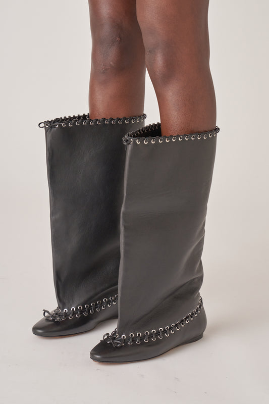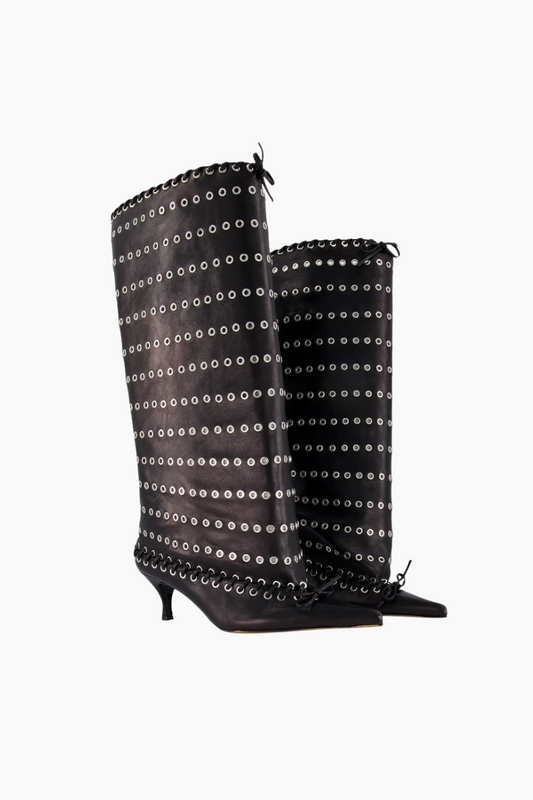 Regular price $2,160.00 CADRegular priceUnit price perSale price $2,160.00 CADvar product = { id: 9126048465184, title: "Soft Grommet Level Boots", available: true, handle: "soft-grommet-level-boots", description: "Knee high boot in black nappa leather with metal grommets and leather lacing. The upper part of the boot is removable and can be worn as a mule. The boot has an internal mesh sock.", type: "Shoes", tags: ["event","fabprivatesale","FW24","WSA"], options_with_values: [{"name":"Size","position":1,"values":["37","38","39","40","41"]}], featured_media: { alt: "Soft Grommet Level Boots", src: "\/\/absolutelyfabrics.com\/cdn\/shop\/files\/13.png?v=1752602350", }, url: "\/collections\/august-barron\/products\/soft-grommet-level-boots", mf: {} }; var variants = []; var variant = { id: 47958606577952, available: true, option1: "37", option2: null, option3: null, options: ["37"], price: 216000, compare_price: null, inventory: { quantity: 1, policy: "deny" }, mf: {} }; variant.media = null; product.selected_variant = variant; variants.push(variant); var variant = { id: 47958606643488, available: true, option1: "38", option2: null, option3: null, options: ["38"], price: 216000, compare_price: null, inventory: { quantity: 2, policy: "deny" }, mf: {} }; variant.media = null; variants.push(variant); var variant = { id: 47958606676256, available: true, option1: "39", option2: null, option3: null, options: ["39"], price: 216000, compare_price: null, inventory: { quantity: 1, policy: "deny" }, mf: {} }; variant.media = null; variants.push(variant); var variant = { id: 47958606709024, available: false, option1: "40", option2: null, option3: null, options: ["40"], price: 216000, compare_price: null, inventory: { quantity: 0, policy: "deny" }, mf: {} }; variant.media = null; variants.push(variant); var variant = { id: 47958606741792, available: false, option1: "41", option2: null, option3: null, options: ["41"], price: 216000, compare_price: null, inventory: { quantity: 0, policy: "deny" }, mf: {} }; variant.media = null; variants.push(variant); product.variants = variants; -