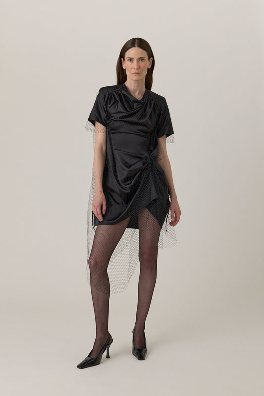 Regular price $1,395.00 CADRegular priceUnit price perSale price $1,395.00 CADvar product = { id: 10063153758496, title: "Cinched Dress", available: true, handle: "cinched-dress", description: "Short-sleeve dress with an overlay of sheer mesh netting. Designed with soft draping at the neckline and a cinched side detail that creates subtle asymmetry. Finished with a relaxed fit and a lightweight layered construction.\nModel is 5'11 and is wearing a size S.", type: "Dresses", tags: ["FW25","new"], options_with_values: [{"name":"Size","position":1,"values":["S","M","L"]}], featured_media: { alt: "Cinched Dress", src: "\/\/absolutelyfabrics.com\/cdn\/shop\/files\/CINCHED-DRESS_TOPS_tiff_1.jpg?v=1759950190", }, url: "\/collections\/august-barron\/products\/cinched-dress", mf: {} }; var variants = []; var variant = { id: 50749993812256, available: false, option1: "S", option2: null, option3: null, options: ["S"], price: 139500, compare_price: null, inventory: { quantity: 0, policy: "deny" }, mf: {} }; variant.media = null; variants.push(variant); var variant = { id: 50749993845024, available: false, option1: "M", option2: null, option3: null, options: ["M"], price: 139500, compare_price: null, inventory: { quantity: 0, policy: "deny" }, mf: {} }; variant.media = null; variants.push(variant); var variant = { id: 50749993877792, available: true, option1: "L", option2: null, option3: null, options: ["L"], price: 139500, compare_price: null, inventory: { quantity: 1, policy: "deny" }, mf: {} }; variant.media = null; product.selected_variant = variant; variants.push(variant); product.variants = variants; -