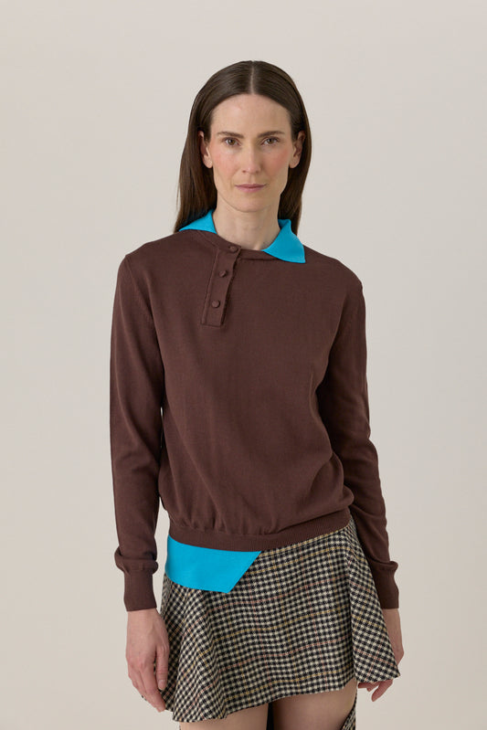 Regular price $695.00 CADRegular priceUnit price perSale price $695.00 CADvar product = { id: 10063148777760, title: "Double Polo", available: true, handle: "double-polo", description: "Long-sleeve cotton polo with layered contrast detailing. Features a classic button placket, pointed collar in sky blue, and an asymmetrical blue hem insert at the waist. Finished with ribbed cuffs and a slim silhouette.\nThis style fits small, size up one full size. Model is 5'11 and is wearing a size M.", type: "Knitwear", tags: ["FW25","new"], options_with_values: [{"name":"Size","position":1,"values":["M","L"]}], featured_media: { alt: "Double Polo", src: "\/\/absolutelyfabrics.com\/cdn\/shop\/files\/COTTONDOUBLEPOLOBROWNANDBLUE_TOPS_tiff_1.jpg?v=1759950525", }, url: "\/collections\/august-barron\/products\/double-polo", mf: {} }; var variants = []; var variant = { id: 50749986373920, available: true, option1: "M", option2: null, option3: null, options: ["M"], price: 69500, compare_price: null, inventory: { quantity: 1, policy: "deny" }, mf: {} }; variant.media = null; product.selected_variant = variant; variants.push(variant); var variant = { id: 50749986406688, available: true, option1: "L", option2: null, option3: null, options: ["L"], price: 69500, compare_price: null, inventory: { quantity: 1, policy: "deny" }, mf: {} }; variant.media = null; variants.push(variant); product.variants = variants; -