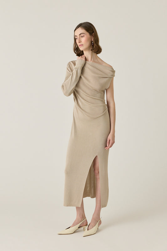 Regular price $825.00 CADRegular priceUnit price perSale price $825.00 CADvar product = { id: 10141340664096, title: "Sophia Asymmetric Off Shoulder Dress", available: true, handle: "sophia-asymmetric-off-shoulder-dress", description: "One-shoulder slinky knit dress crafted from viscose with fluid drape. Asymmetric gathered neckline. Skims the body with high side slit.\n Model is wearing size S.", type: "Dresses", tags: ["new","PS26"], options_with_values: [{"name":"Size","position":1,"values":["S","M"]}], featured_media: { alt: "Sophia Asymmetric Off Shoulder Dress", src: "\/\/absolutelyfabrics.com\/cdn\/shop\/files\/AERON_GRENADA_DRESS_front_jpg_3.jpg?v=1769111253", }, url: "\/collections\/dresses\/products\/sophia-asymmetric-off-shoulder-dress", mf: {} }; var variants = []; var variant = { id: 51033803555104, available: true, option1: "S", option2: null, option3: null, options: ["S"], price: 82500, compare_price: null, inventory: { quantity: 1, policy: "deny" }, mf: {} }; variant.media = null; product.selected_variant = variant; variants.push(variant); var variant = { id: 51033803587872, available: true, option1: "M", option2: null, option3: null, options: ["M"], price: 82500, compare_price: null, inventory: { quantity: 1, policy: "deny" }, mf: {} }; variant.media = null; variants.push(variant); product.variants = variants; -