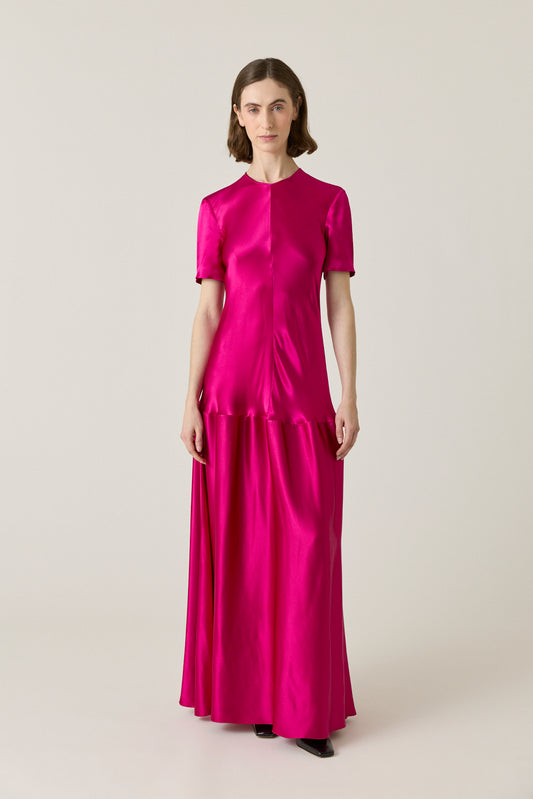 Clodia Hammered Satin Tee Dress - Fuchsia