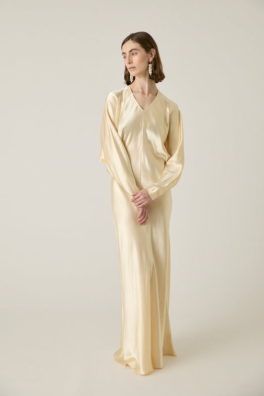 Naomie Hammered Satin Dress - Cream