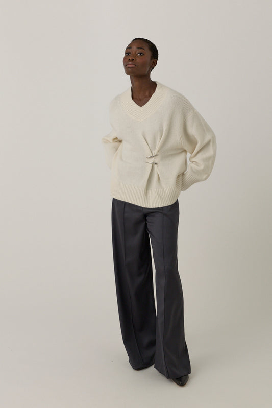Regular price $1,725.00 CADRegular priceUnit price perSale price $1,725.00 CADvar product = { id: 10058447847712, title: "Cashmere Claws Sweater", available: true, handle: "cashmere-claws-sweater", description: "\n\n\n\n\n\nCashmere sweater with a relaxed fit, featuring a V neckline and two polished metal claw clasps at the front. Finished with ribbed cuffs and hem.\nModel is 5'10 and is wearing a size M.\n\n\n\n\n\n", type: "Knitwear", tags: ["FW25"], options_with_values: [{"name":"Size","position":1,"values":["M","L"]}], featured_media: { alt: "Cashmere Claws Sweater", src: "\/\/absolutelyfabrics.com\/cdn\/shop\/files\/AF_SIZE_GUIDE_922_23.png?v=1759864554", }, url: "\/collections\/grace-ling\/products\/cashmere-claws-sweater", mf: {} }; var variants = []; var variant = { id: 50728785838368, available: true, option1: "M", option2: null, option3: null, options: ["M"], price: 172500, compare_price: null, inventory: { quantity: 1, policy: "deny" }, mf: {} }; variant.media = null; product.selected_variant = variant; variants.push(variant); var variant = { id: 50728785871136, available: true, option1: "L", option2: null, option3: null, options: ["L"], price: 172500, compare_price: null, inventory: { quantity: 1, policy: "deny" }, mf: {} }; variant.media = null; variants.push(variant); product.variants = variants; -