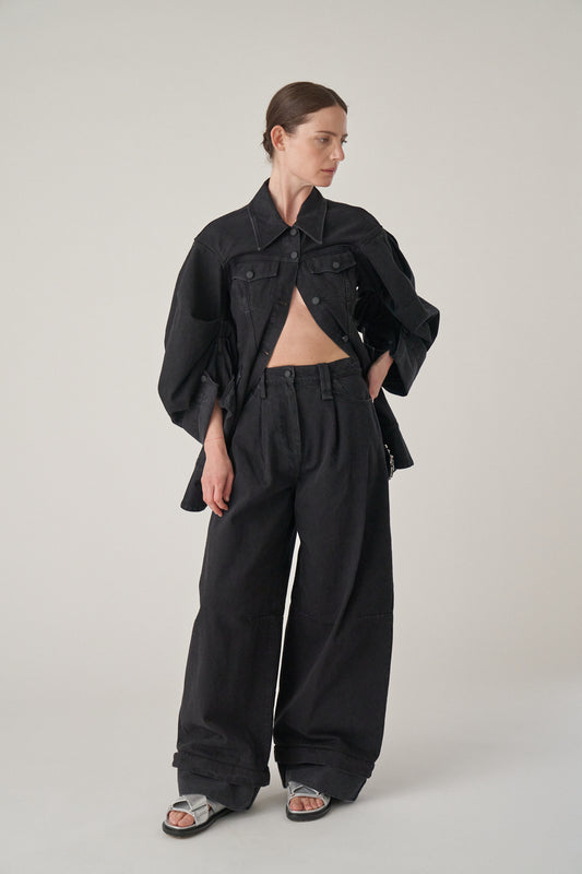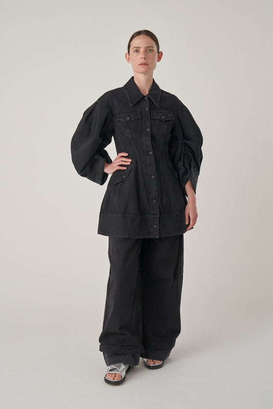Sculpted Short Denim Coat - Black