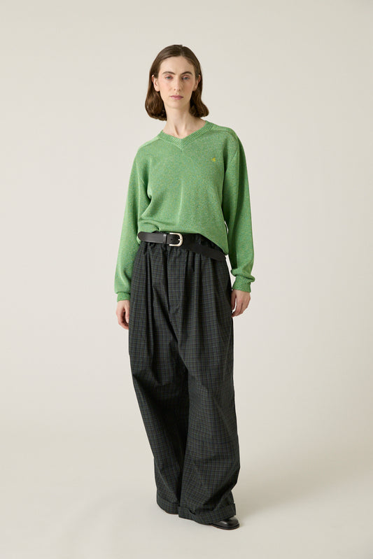 Regular price $1,125.00 CADRegular priceUnit price perSale price $1,125.00 CADvar product = { id: 10145745600800, title: "V-Neck Sweater - Green", available: true, handle: "v-neck-sweater-green", description: "Long-sleeve knit sweater with V-neckline and ribbed trim at the cuffs and hem. Relaxed fit.\nModel is wearing size S.", type: "Knitwear", tags: ["new"], options_with_values: [{"name":"Size","position":1,"values":["S"]}], featured_media: { alt: "V-Neck Sweater - Green", src: "\/\/absolutelyfabrics.com\/cdn\/shop\/files\/V-NECKSWEATER-GREEN_TOPS_jpg_1.jpg?v=1768332113", }, url: "\/collections\/meryll-rogge\/products\/v-neck-sweater-green", mf: {} }; var variants = []; var variant = { id: 51052990857504, available: true, option1: "S", option2: null, option3: null, options: ["S"], price: 112500, compare_price: null, inventory: { quantity: 2, policy: "deny" }, mf: {} }; variant.media = null; product.selected_variant = variant; variants.push(variant); product.variants = variants; -