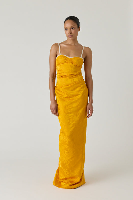 Regular price $4,275.00 CADRegular priceUnit price perSale price $4,275.00 CADvar product = { id: 10249496920352, title: "Silk Jacquard Bralette Dress", available: true, handle: "silk-jacquard-bralette-dress", description: "Floral Jacquard gown with gathering around waist and lingerie inspired gathered bralette bust detail. Lace trim finishes top edge of dress and chiffon ribbon straps. Back slit, back invisible zipper closure.", type: "Dresses", tags: ["new","SS26"], options_with_values: [{"name":"Size","position":1,"values":["2","6"]}], featured_media: { alt: "Silk Jacquard Bralette Dress", src: "\/\/absolutelyfabrics.com\/cdn\/shop\/files\/COLLEENALLEN_SILK_JAQUARD_BRALETTE_DRESS_1.jpg?v=1775844596", }, url: "\/collections\/new-arrivals\/products\/silk-jacquard-bralette-dress", mf: {} }; var variants = []; var variant = { id: 51406518452512, available: true, option1: "2", option2: null, option3: null, options: ["2"], price: 427500, compare_price: null, inventory: { quantity: 1, policy: "deny" }, mf: {} }; variant.media = null; product.selected_variant = variant; variants.push(variant); var variant = { id: 51406518485280, available: true, option1: "6", option2: null, option3: null, options: ["6"], price: 427500, compare_price: null, inventory: { quantity: 1, policy: "deny" }, mf: {} }; variant.media = null; variants.push(variant); product.variants = variants; -