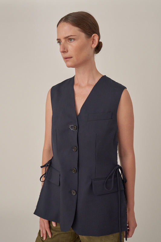 Regular price $1,075.00 CADRegular priceUnit price per$1,795.00 CADSale price $1,075.00 CADvar product = { id: 9977629933856, title: "Waistcoat with Side Slits", available: true, handle: "waistcoat-navy", description: "\nV-neck waistcoat made from tropical wool, putting a subverted spin on classic tailoring. Raw-cut side slits with adjustable ties. Upper welt pocket and lower flap pockets. Button closure. Hand-embroidered Marni Symbol on the shoulder and Marni Mending around the buttonhole. Lined.\n", type: "Suits", tags: ["Black Friday","fabprivatesale","PF25"], options_with_values: [{"name":"Size","position":1,"values":["IT 40\/US 4","IT 44\/US 8","IT 48\/US 12"]}], featured_media: { alt: "Waistcoat with Side Slits", src: "\/\/absolutelyfabrics.com\/cdn\/shop\/files\/2_43e499c1-598e-4ce8-beff-627892000f28.png?v=1752255400", }, url: "\/collections\/sale\/products\/waistcoat-navy", mf: {} }; var variants = []; var variant = { id: 50313340191008, available: true, option1: "IT 40\/US 4", option2: null, option3: null, options: ["IT 40\/US 4"], price: 107500, compare_price: 179500, inventory: { quantity: 1, policy: "deny" }, mf: {} }; variant.media = null; product.selected_variant = variant; variants.push(variant); var variant = { id: 50313340223776, available: true, option1: "IT 44\/US 8", option2: null, option3: null, options: ["IT 44\/US 8"], price: 107500, compare_price: 179500, inventory: { quantity: 1, policy: "deny" }, mf: {} }; variant.media = null; variants.push(variant); var variant = { id: 50313340256544, available: true, option1: "IT 48\/US 12", option2: null, option3: null, options: ["IT 48\/US 12"], price: 107500, compare_price: 179500, inventory: { quantity: 1, policy: "deny" }, mf: {} }; variant.media = null; variants.push(variant); product.variants = variants; Sale -