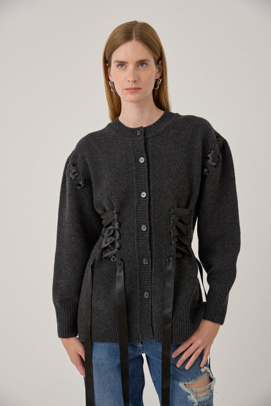 Sculpted Ribbon Corset Detail Cardigan