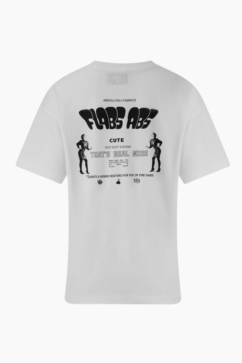 Relaxed-fit short sleeve tee in white cotton. Designed in-house with a black graphic on the back.