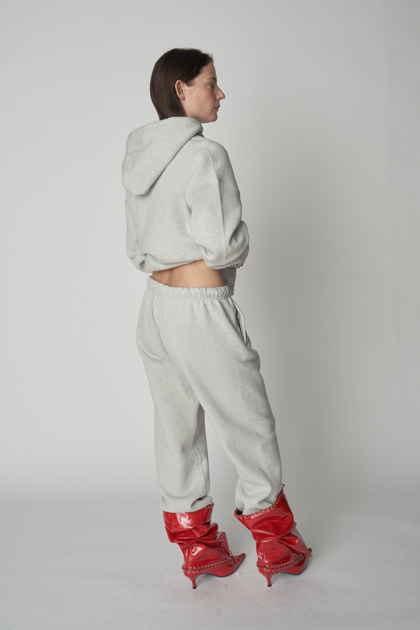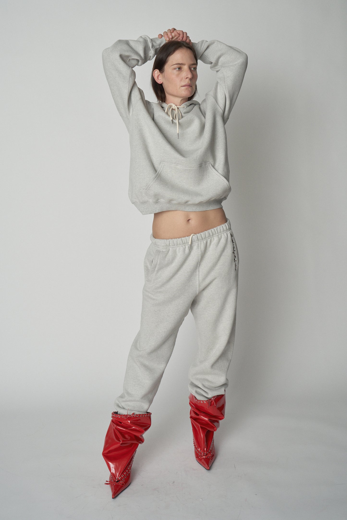 Styled with AF Hoodie and Level Soft Boots in Red.