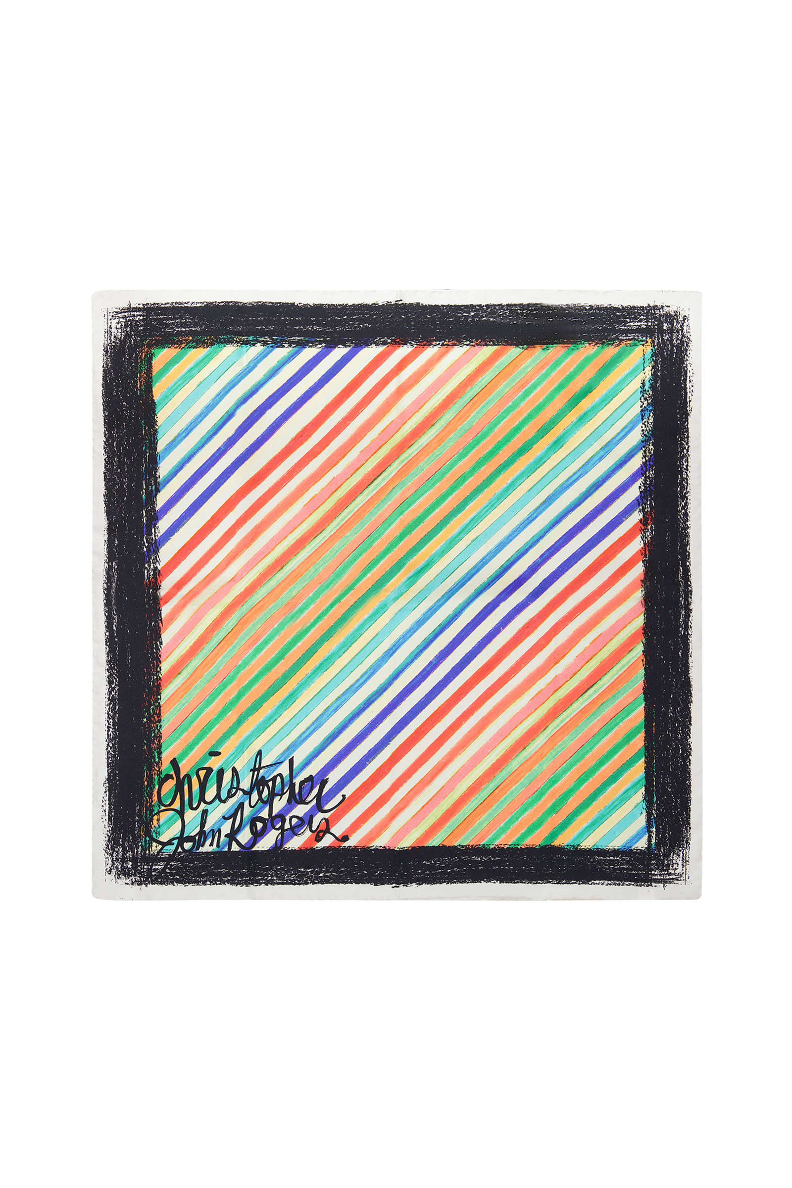 Silk scarf with crayon stripe print. 25 x 25 inches.