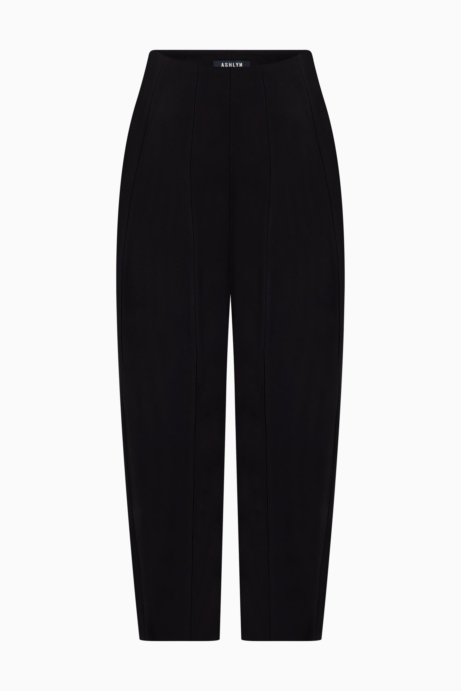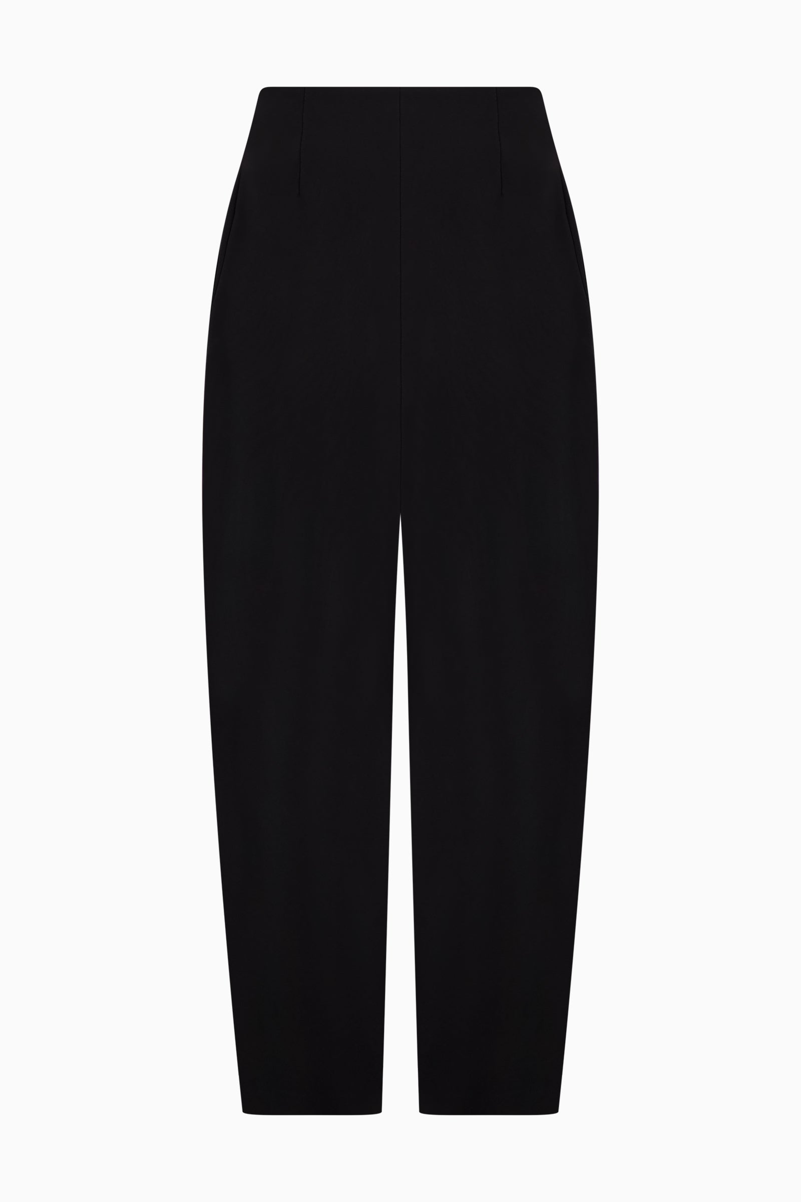 High waist pants cut in Japanese cotton–nylon. Paneled construction with softly rounded silhouette. Front-fly opening.