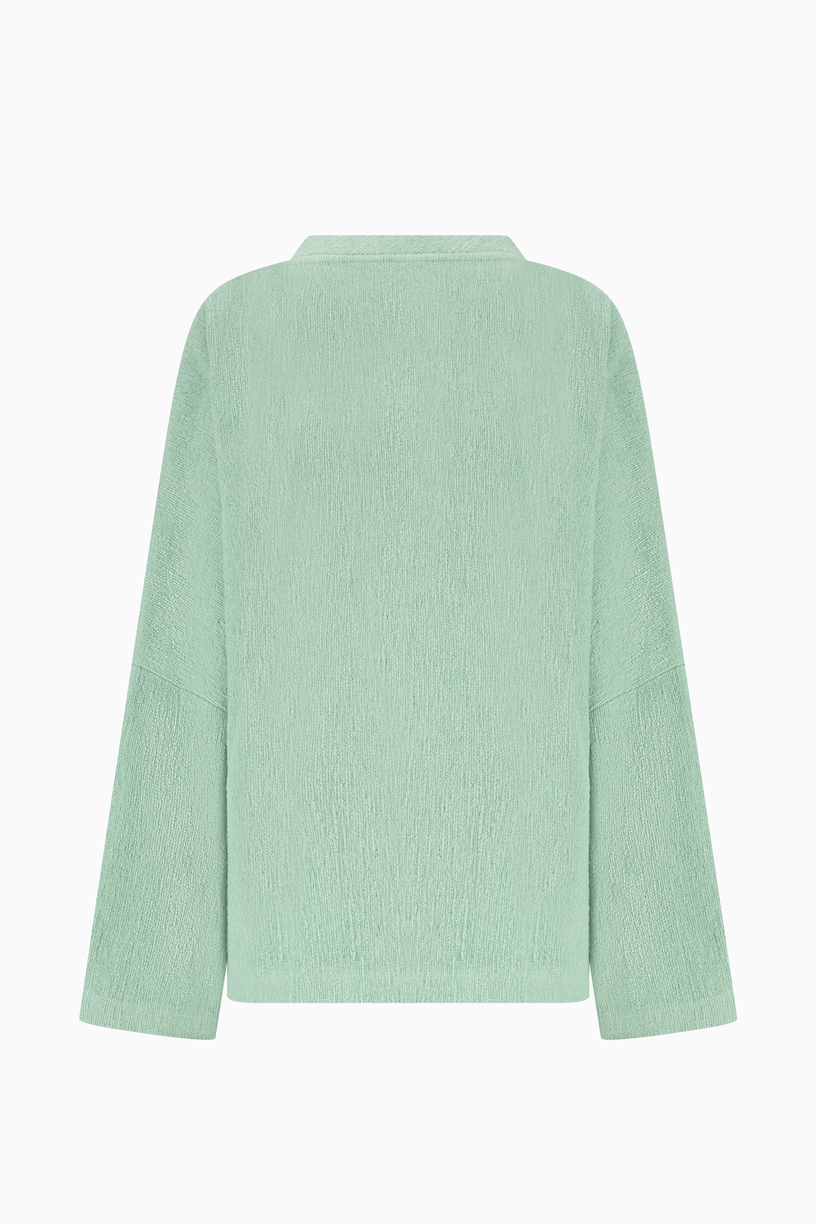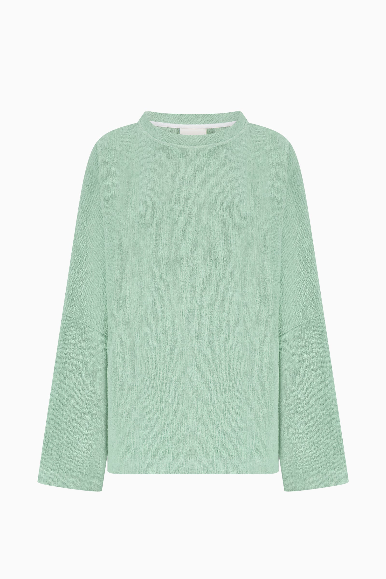 Relaxed long-sleeve sweater in textured bouclé knit. Features a wide crew neckline, dropped shoulders, and a straight hem.