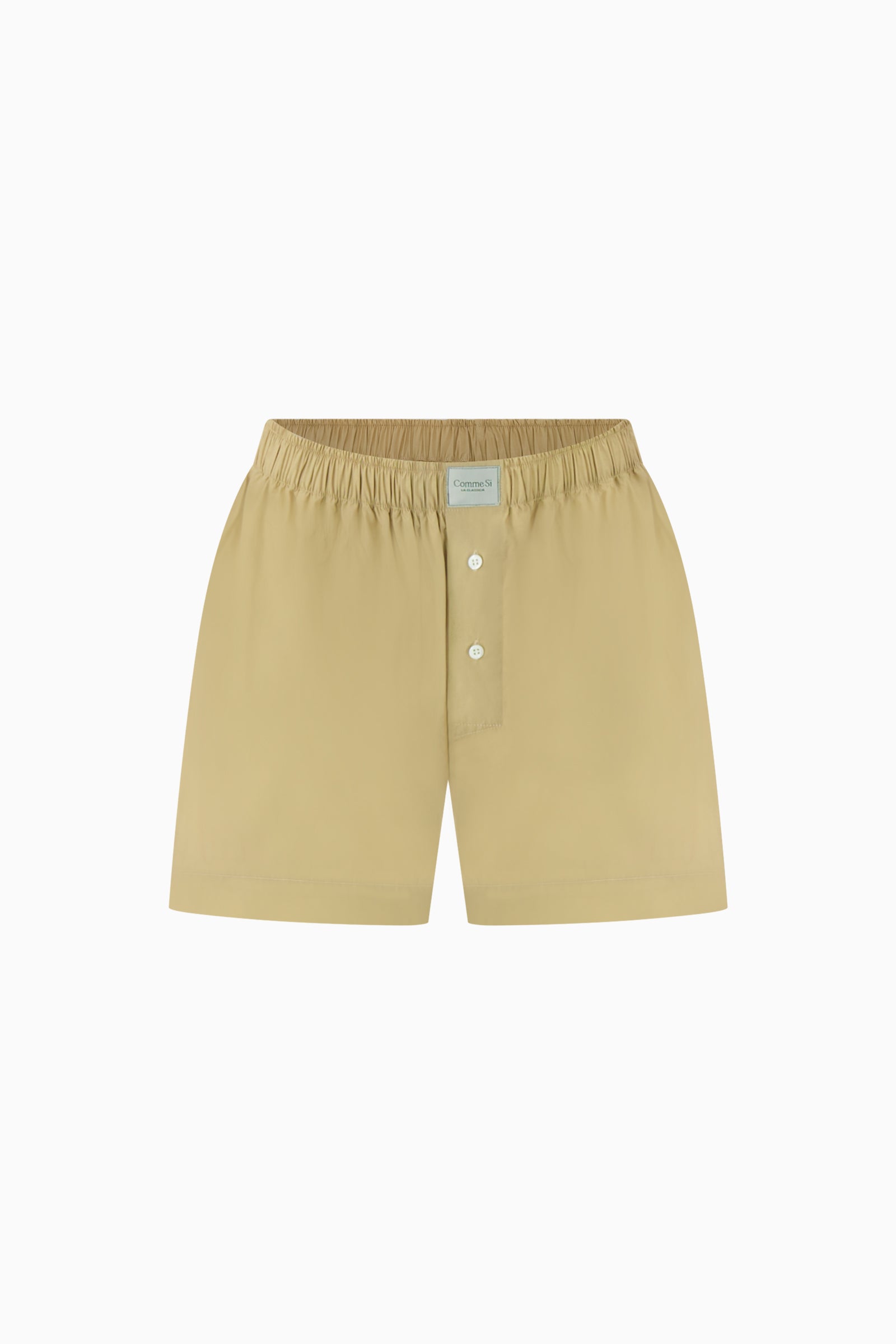 Classic boxer made of Italian cotton poplin. Enclosed front flap with working buttons. Seamless sides with slits for relaxed fit. Covered elastic band.