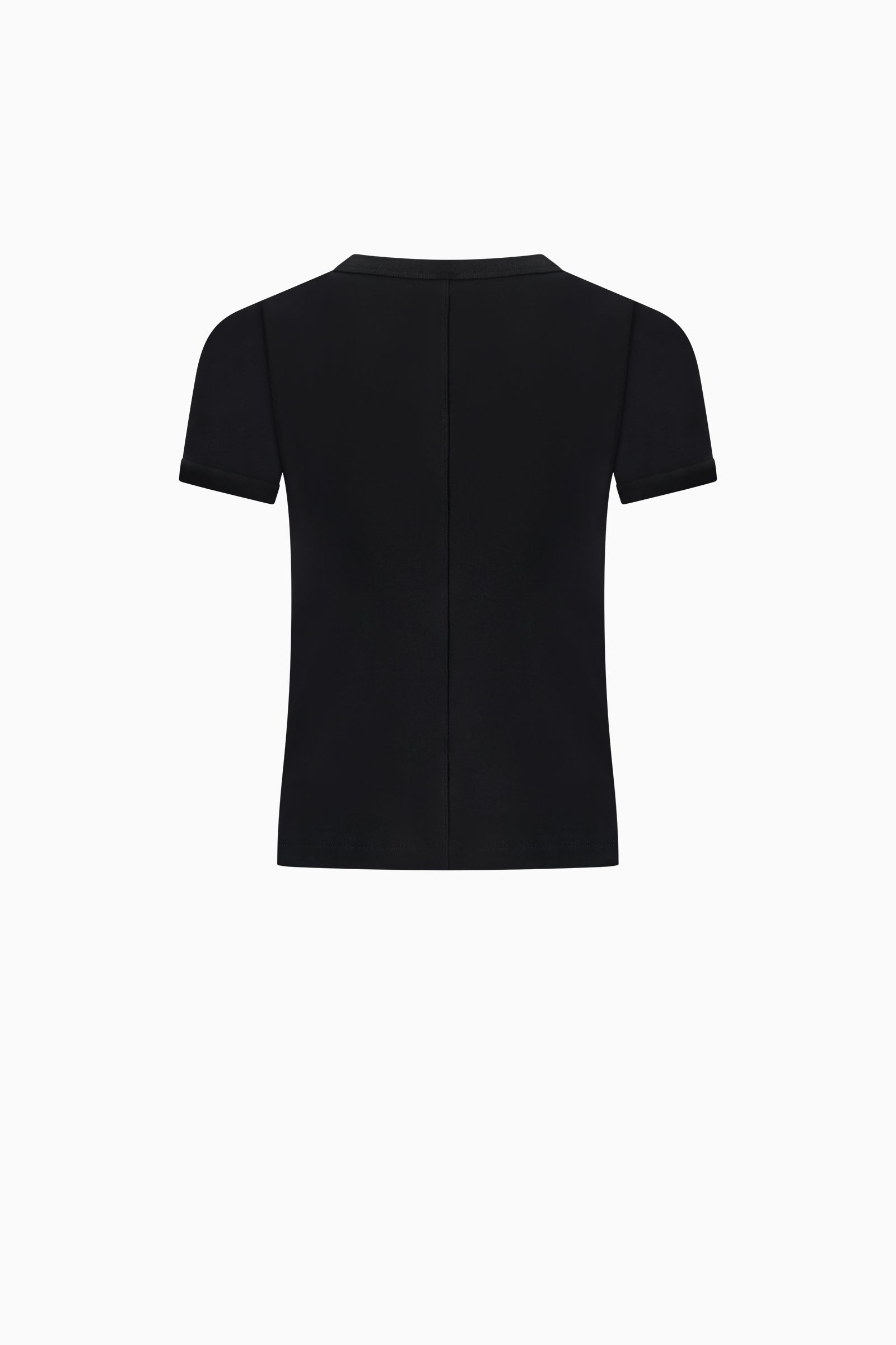 Fitted tee with lengthened short sleeve, round bindings, and double-stitched cut-off seam on the back. Made from soft, medium-weight organic cotton rib.
