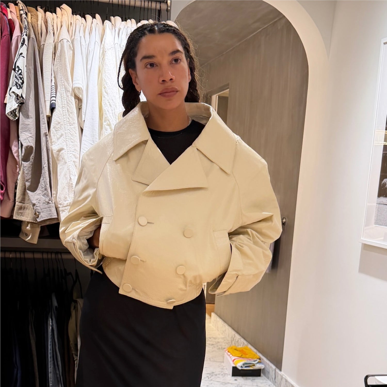 Cargo jacket in red technical nylon. Hood with Simone Rocha custom toggle, two-way zip front fastening, dropped shoulder with puff sleeve, cargo front pockets and toggle adjuster at waist.