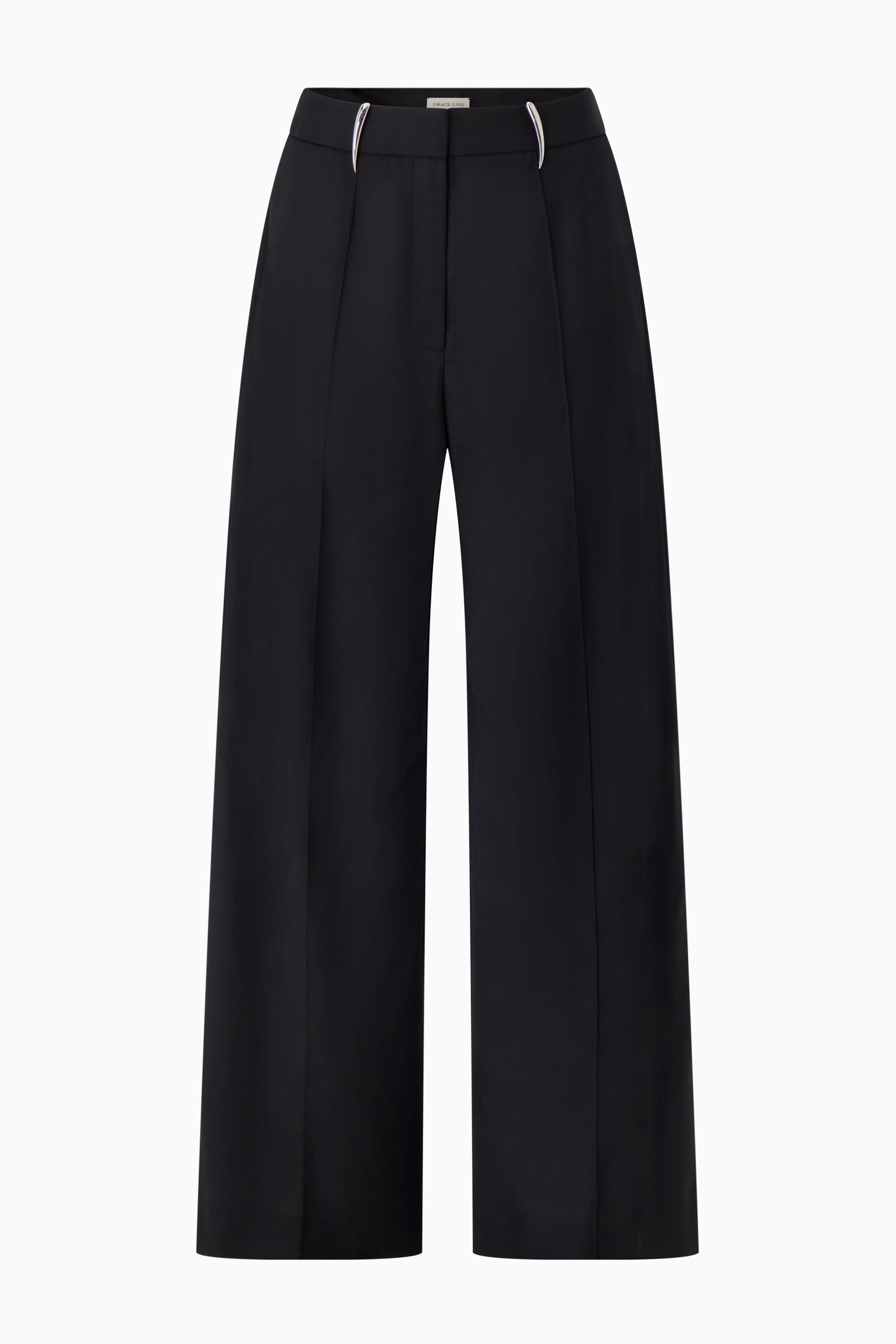 High-waisted, straight leg tailored trousers with biomorphic "claw" detail as front belt loops.