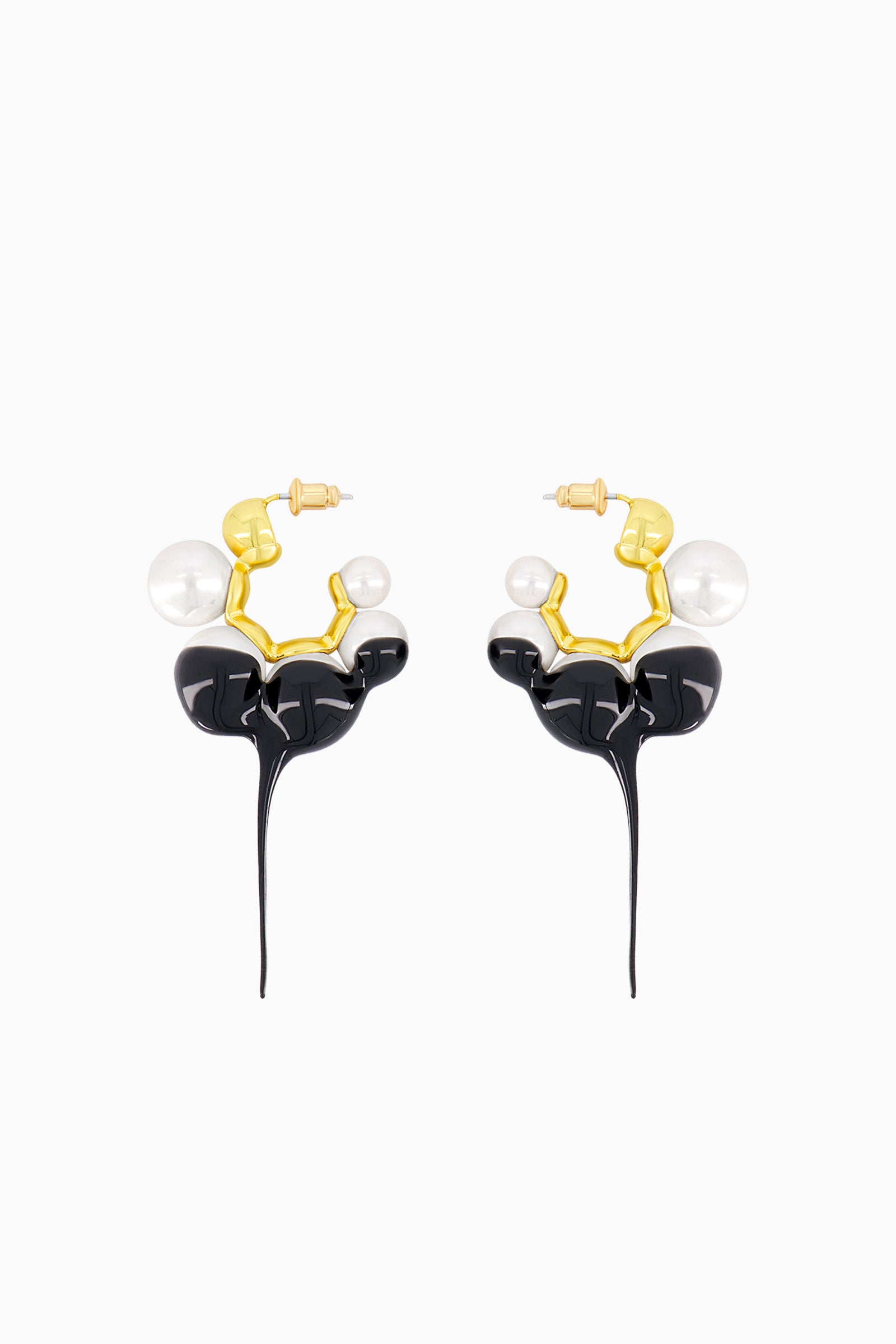 Open hoop earrings in gold tone with rubber-dipped faux-pearls. Post-stud fastening.