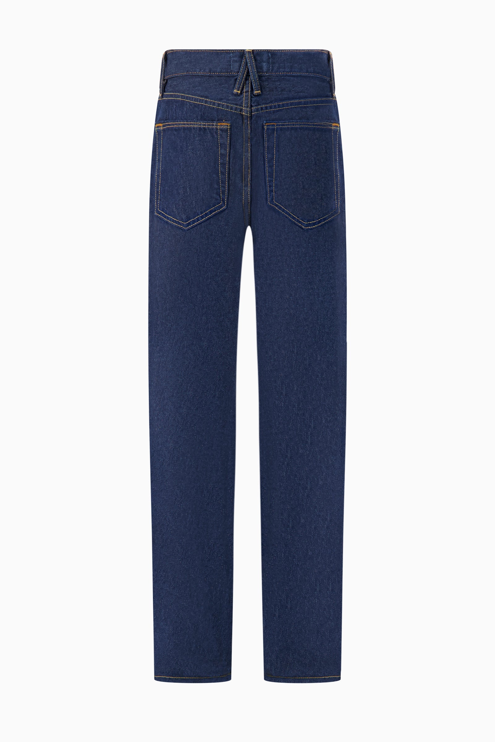 Jean with low-rise waist and slim leg. Classic five-pocket styling. Rinsed deep indigo blue inspired by raw denim.