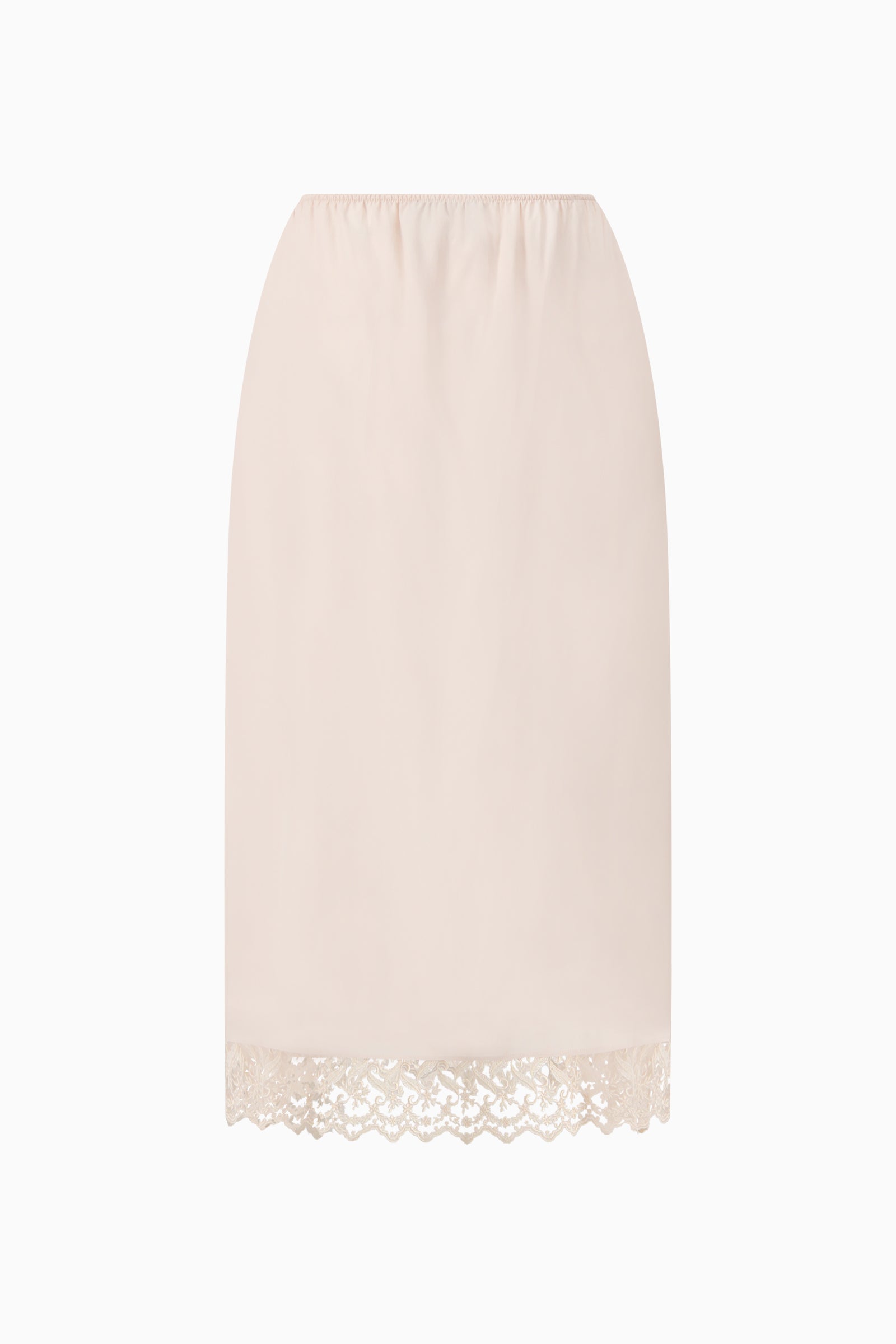Lace-trim negligee skirt featuring elastic waistband and a-line fit.