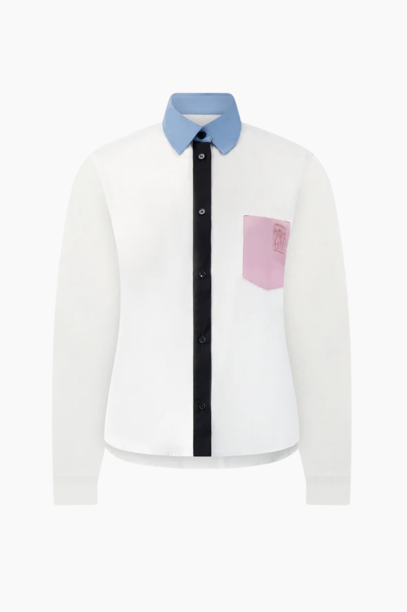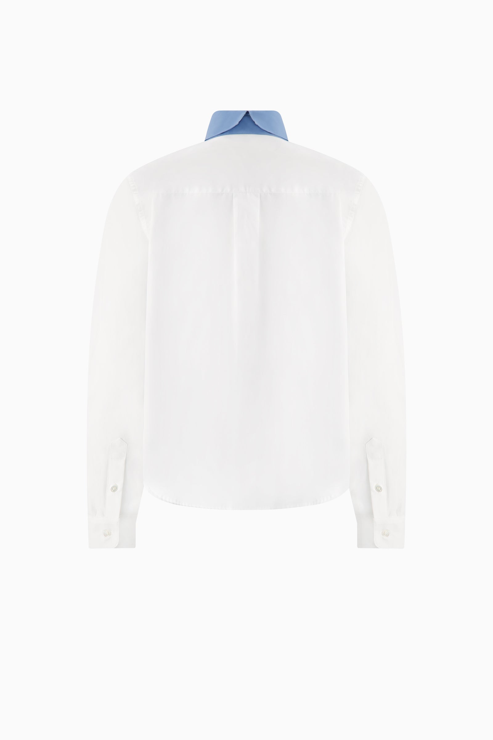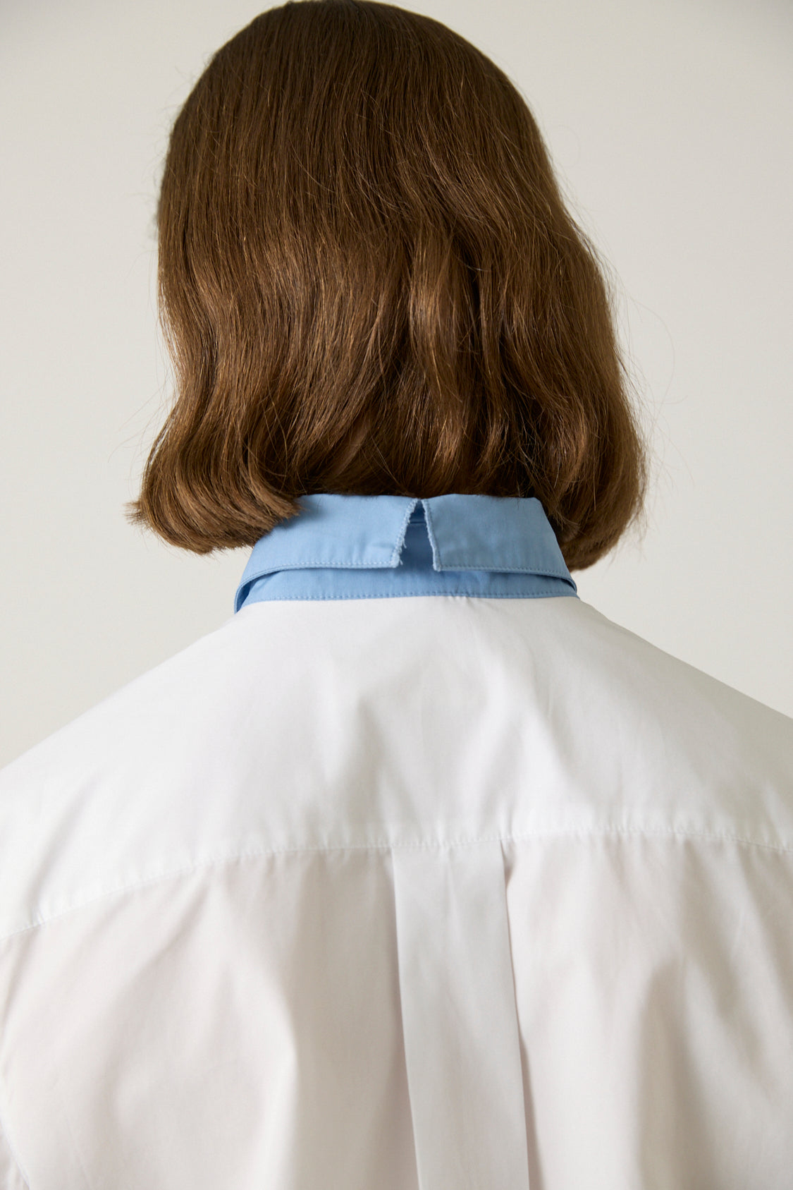 Cropped shirt with embroidered front pocket and back collar with centre cutout.