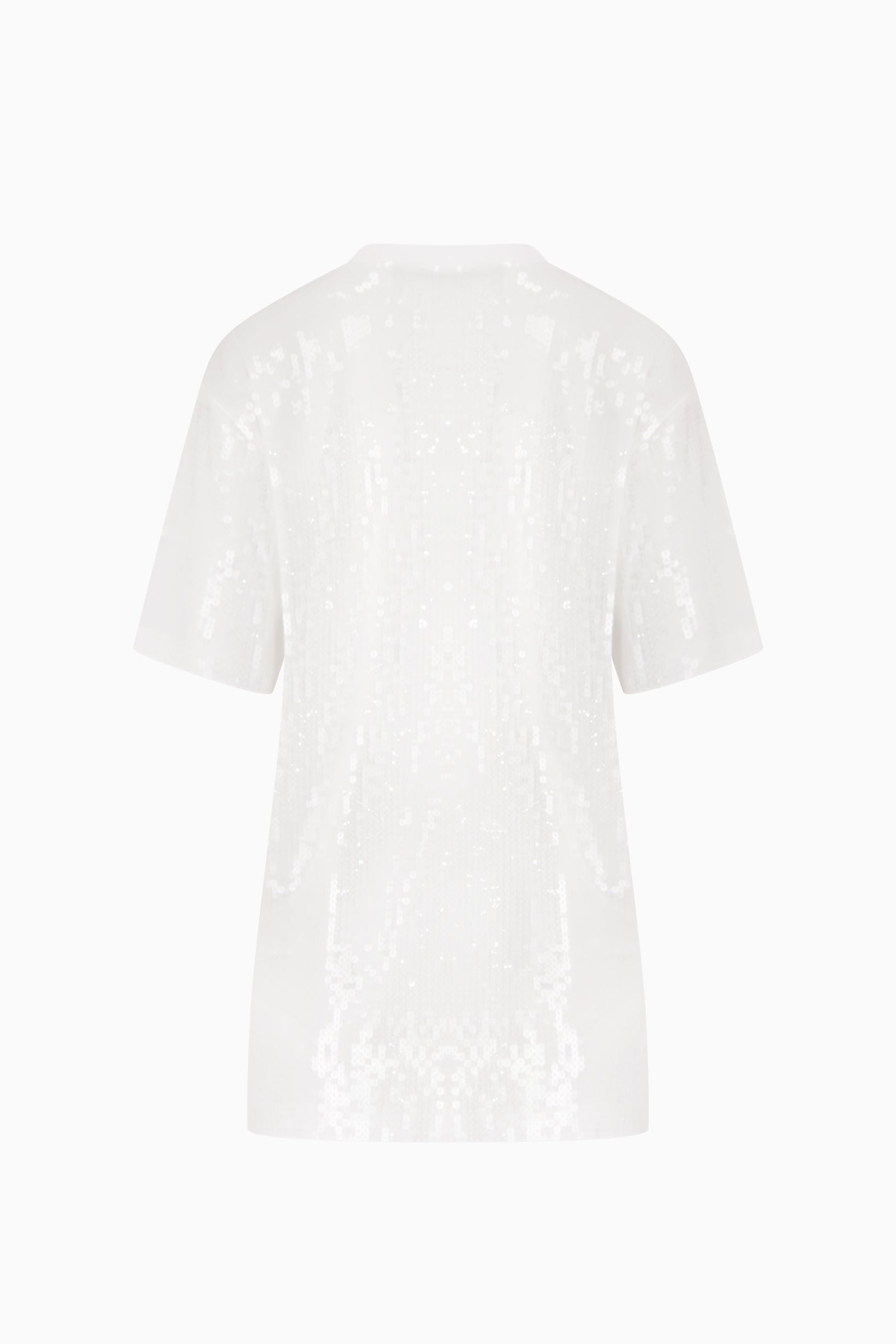 Short-sleeve crewneck tee covered in tonal sequins. Features printed “Conner Ives & Associates” graphic across chest and relaxed silhouette.