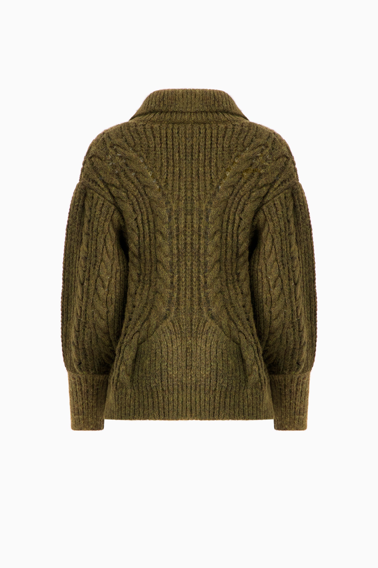 Alpaca-blend knit cardigan featuring seasonal chain detail at the centre. Spread collar. Button closure. Pockets at front.
