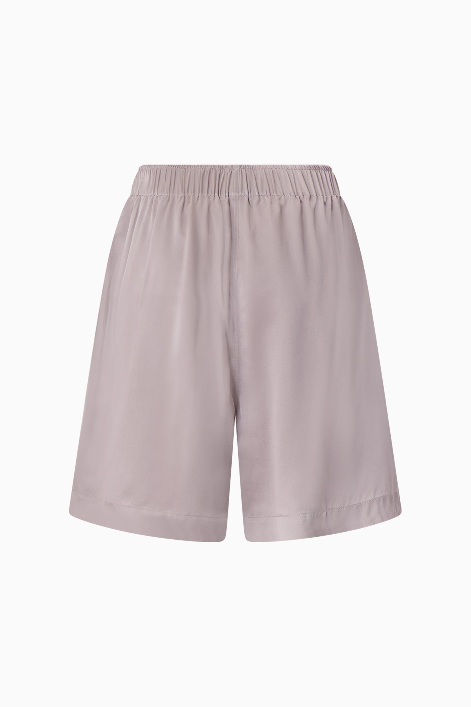 Classic boxer bermuda short made of silk. Enclosed front flap with working buttons. Seamless sides with slits for relaxed fit. Covered elastic band.