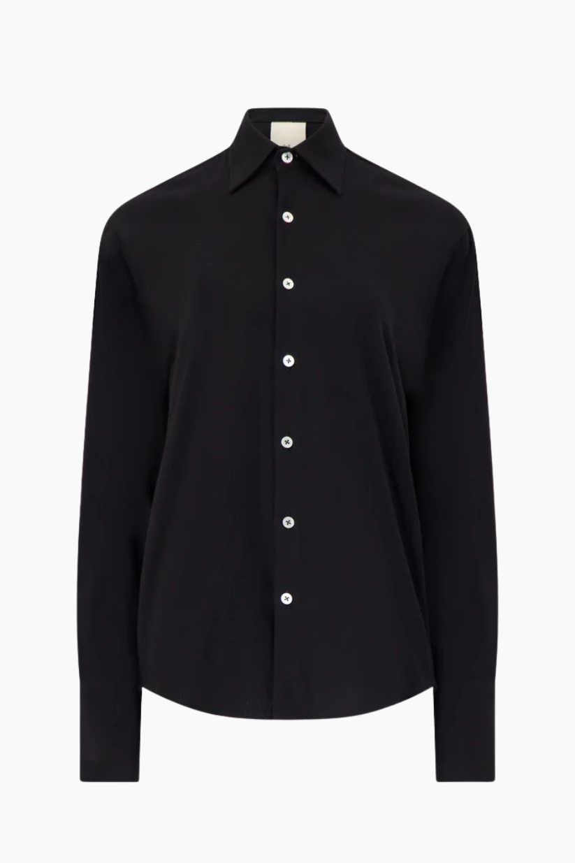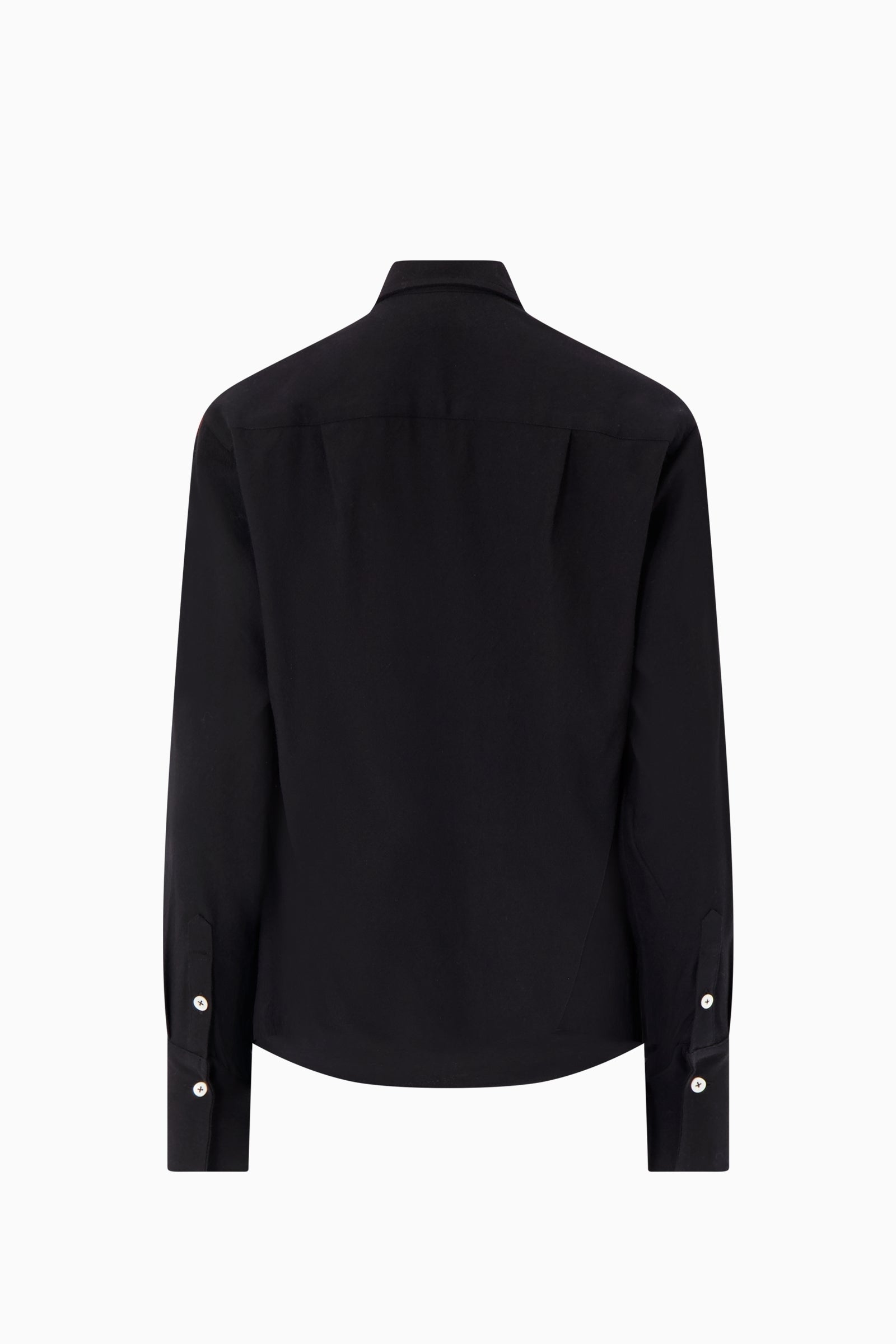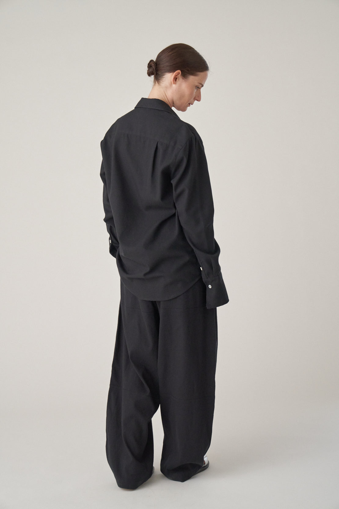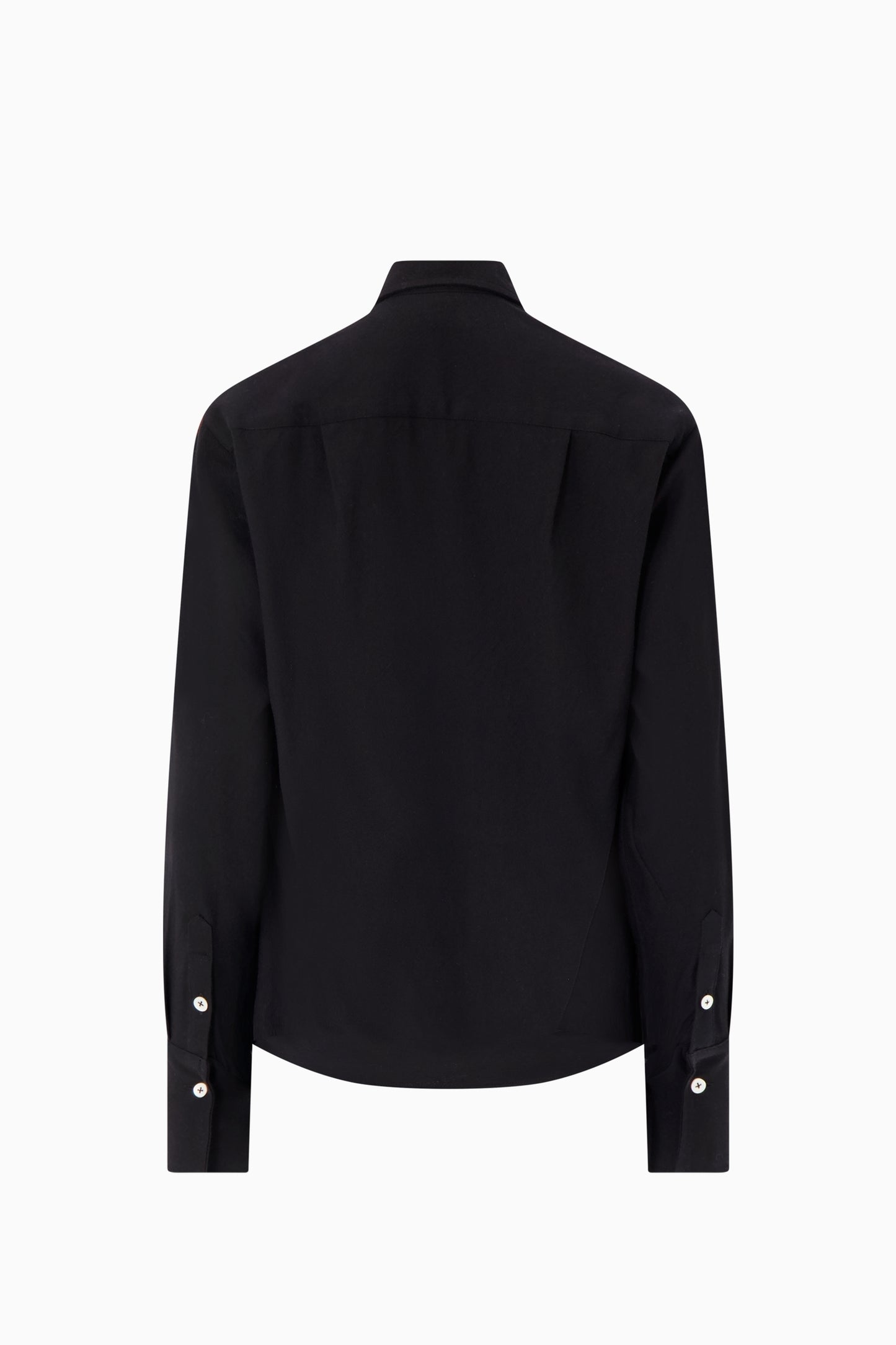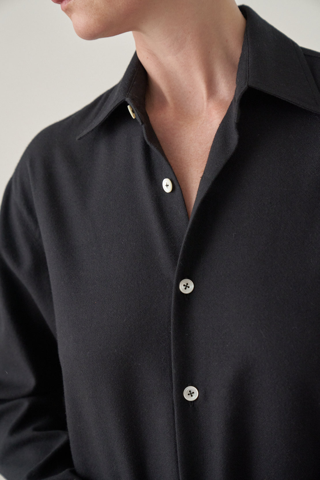 French cuff shirt with relaxed silhouette, handwoven from high-quality cotton yarns. Small point collar, button down placket with french cuffs and buttons.