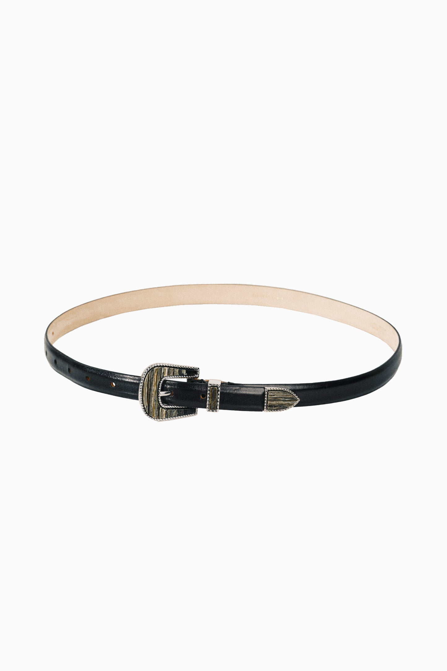 Leather belt handcrafted in Italy from smooth calfskin leather and beige suede lining.