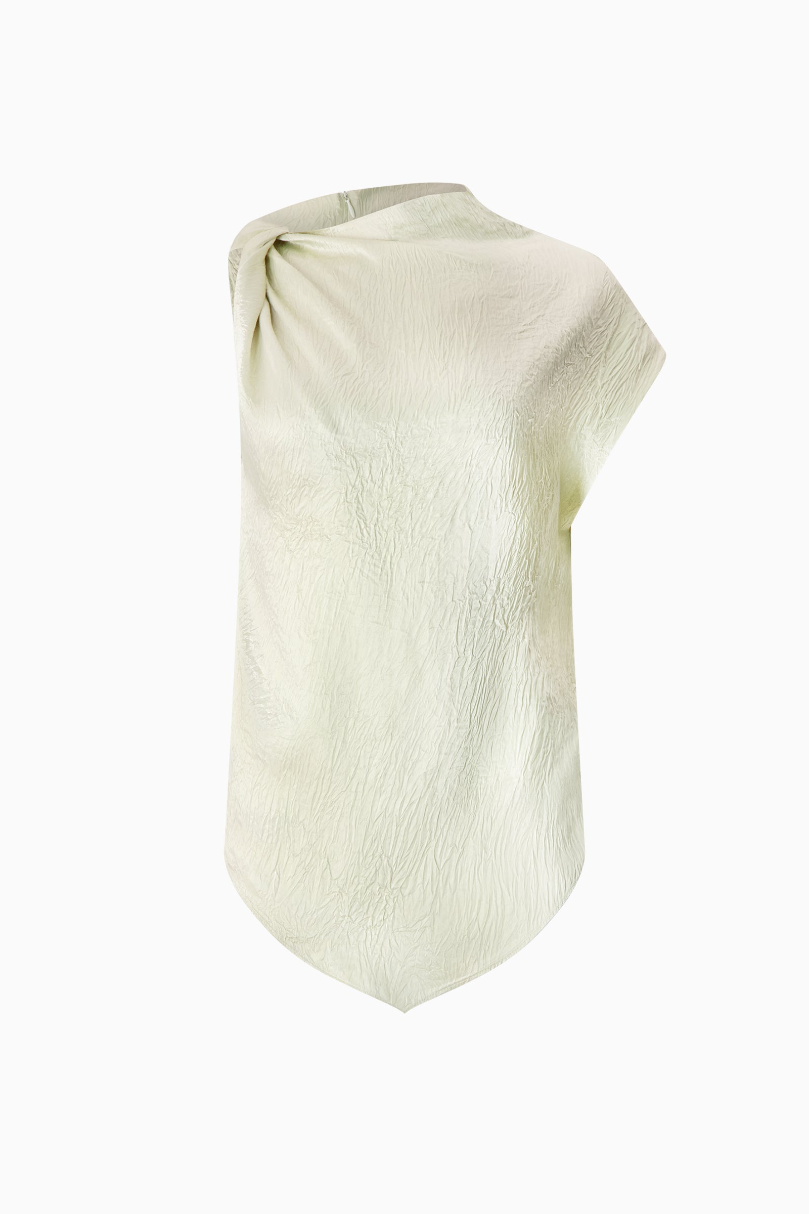 The twist shoulder top with sculptural funnel neckline. Sleeveless. Round hemline.