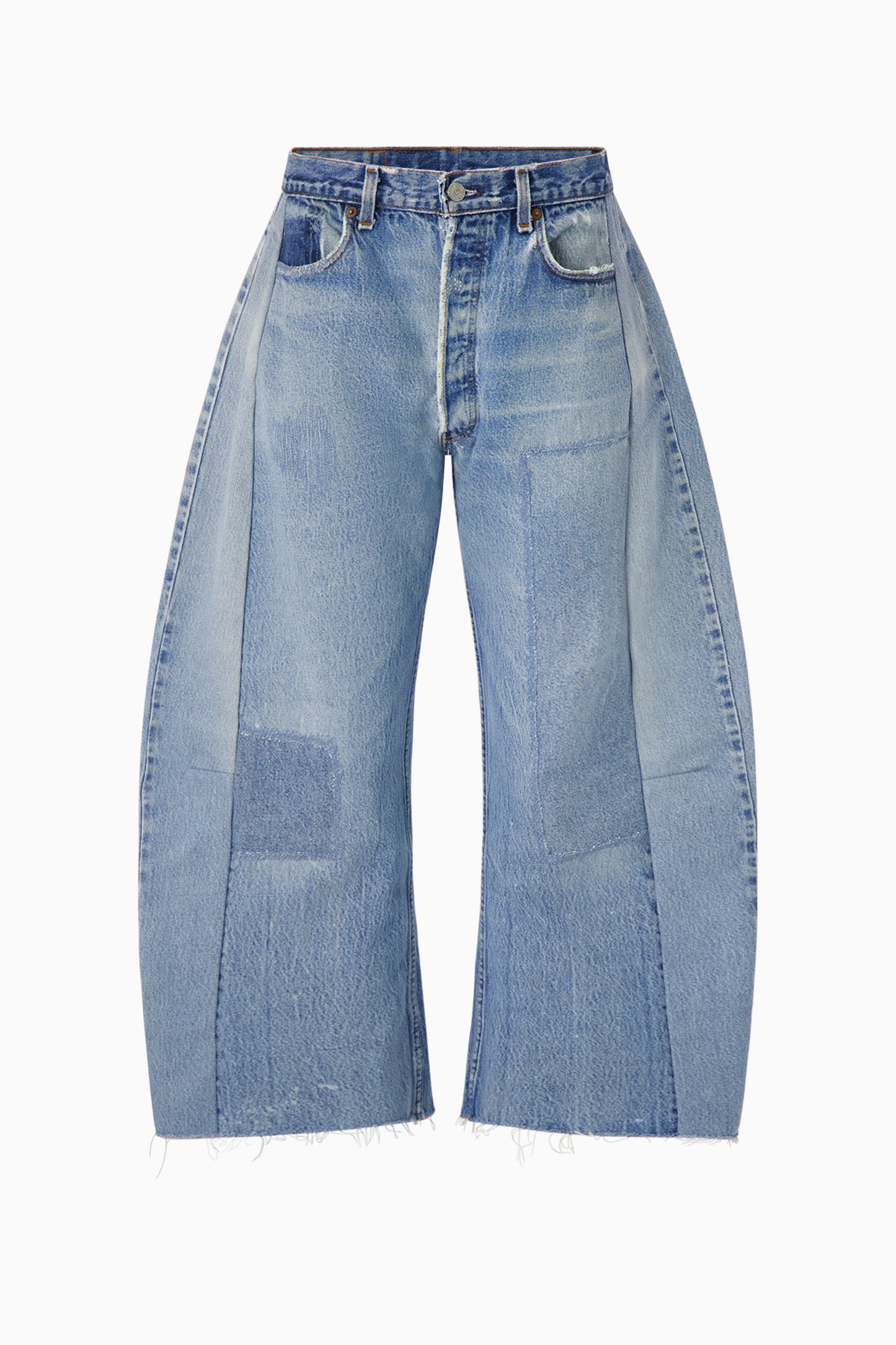 Jean with signature kinked leg shape with cropped, slouchy fit and relaxed waist placement that anchors at high hip.