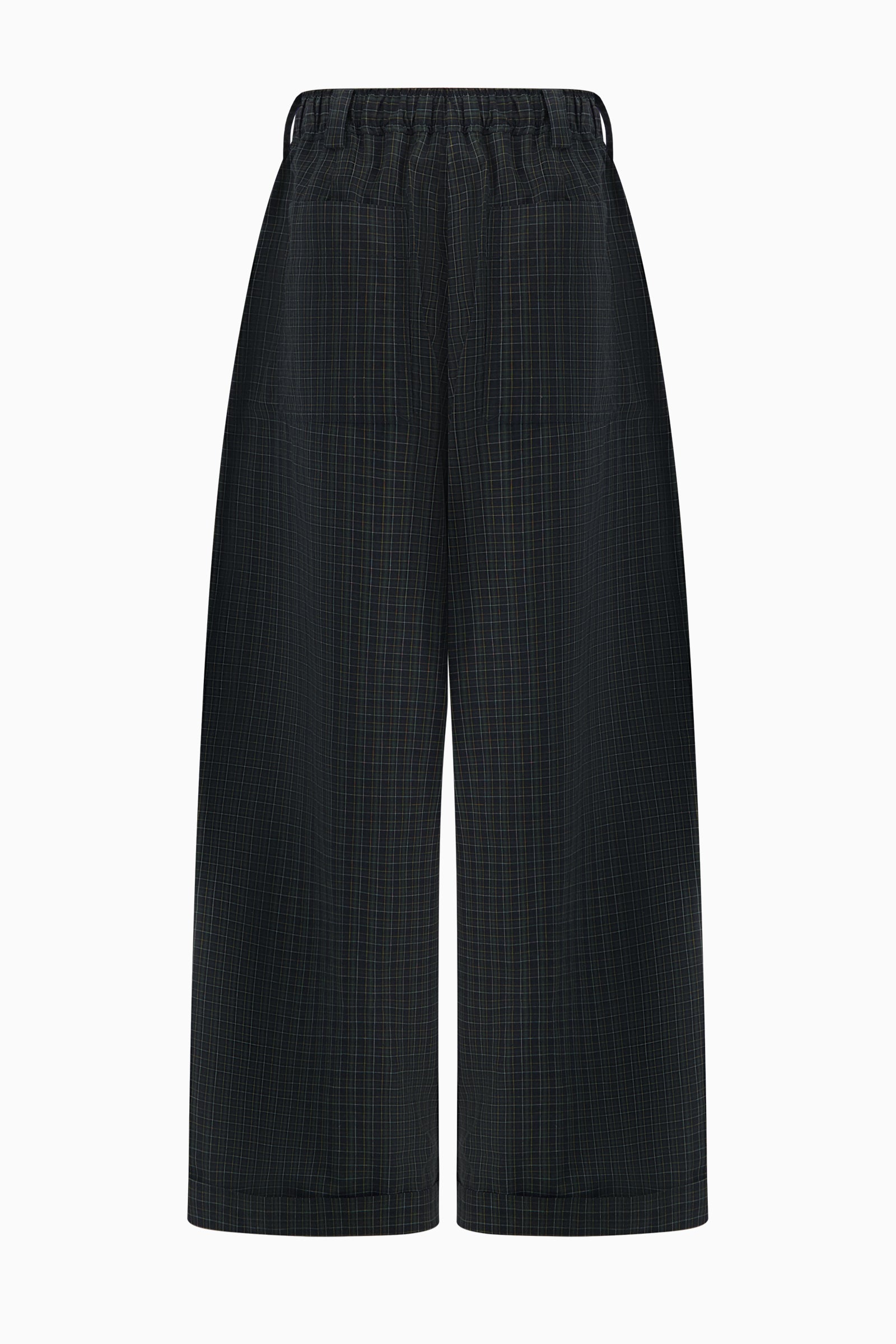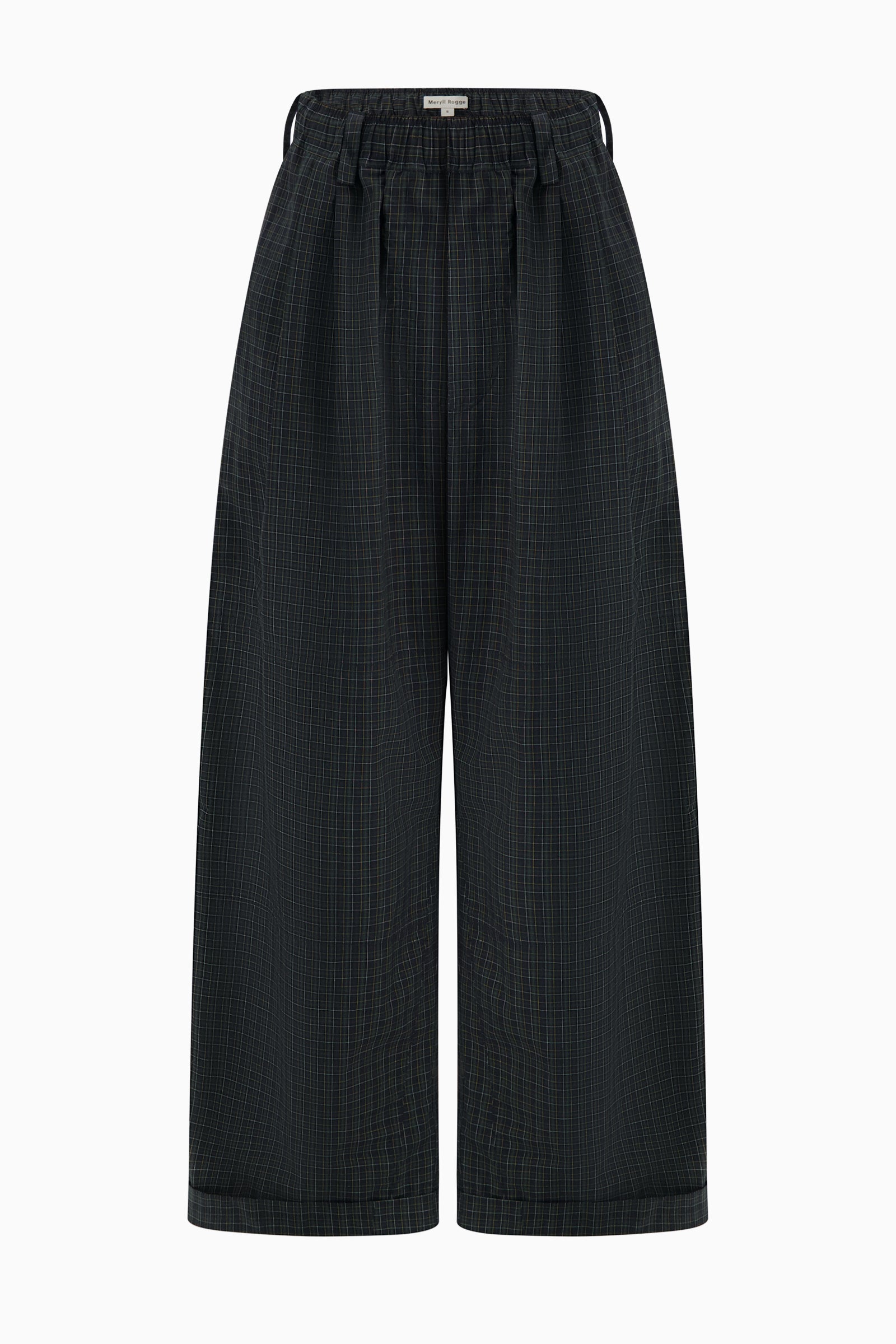 A wide-leg pant with relaxed, pull-on fit. Designed with elasticated waistband and subtle pleating through the front. Cut from lightweight plaid fabric and finished with a straight hem.